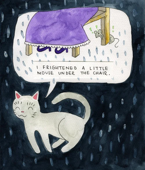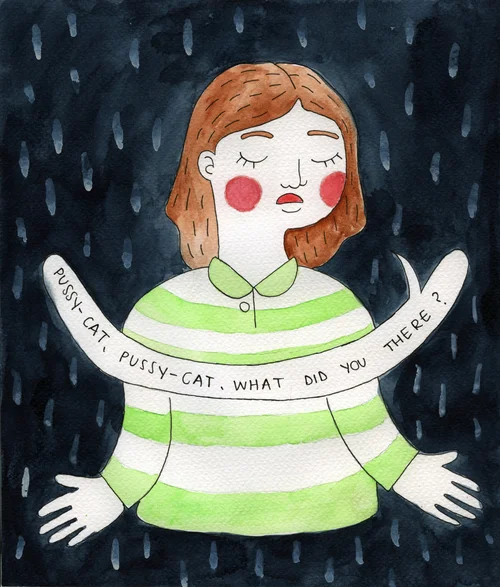 Illustration of nursery rhyme, "Pussy-cat, pussy-cat, where have you been?" by Mother Goose.